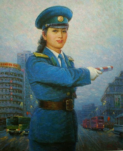 | Nordkorea är troligen det enda land där propagandapostern med glada funktionärer i "folkets" tjänst finns kvar. |